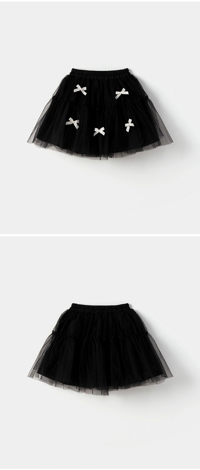 韓國 OZKIZ - 鬆緊腰蝴蝶結裝飾層次網紗蓬裙-黑