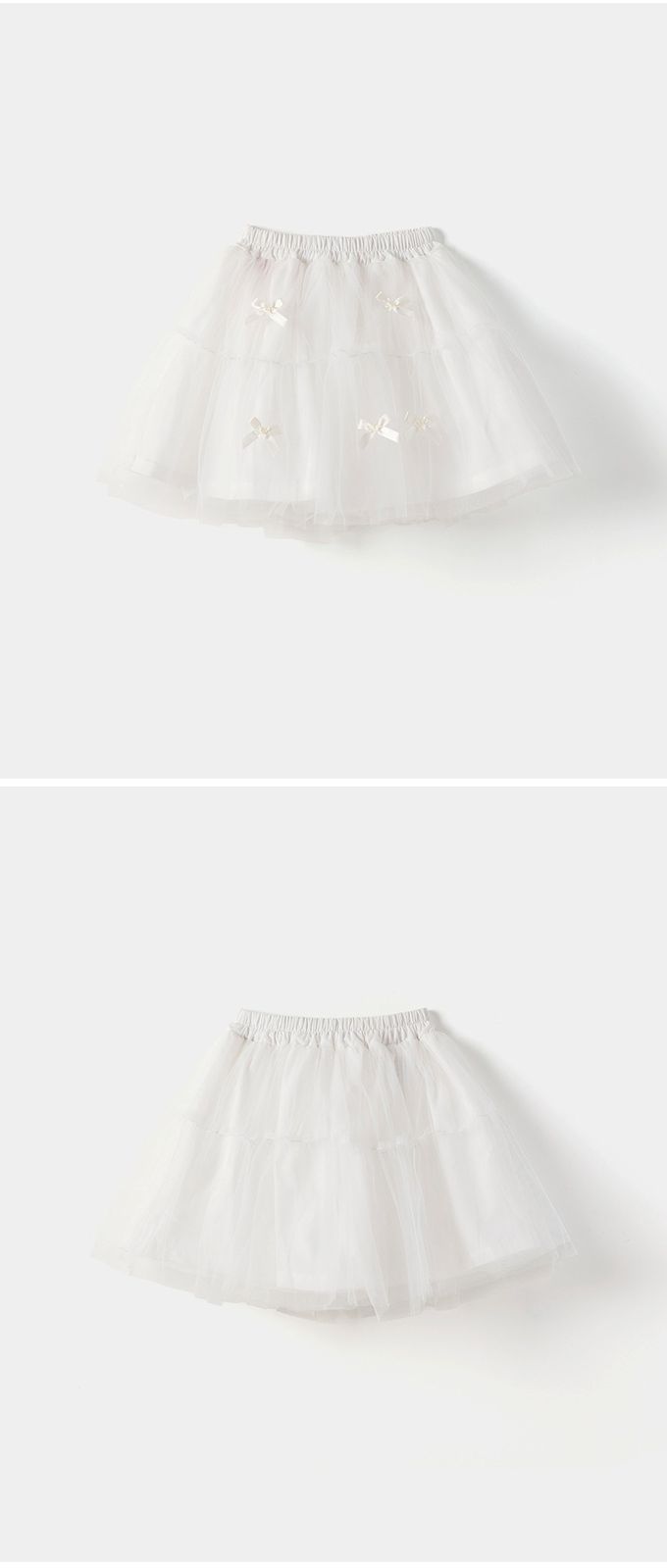 韓國 OZKIZ - 鬆緊腰蝴蝶結裝飾層次網紗蓬裙-白