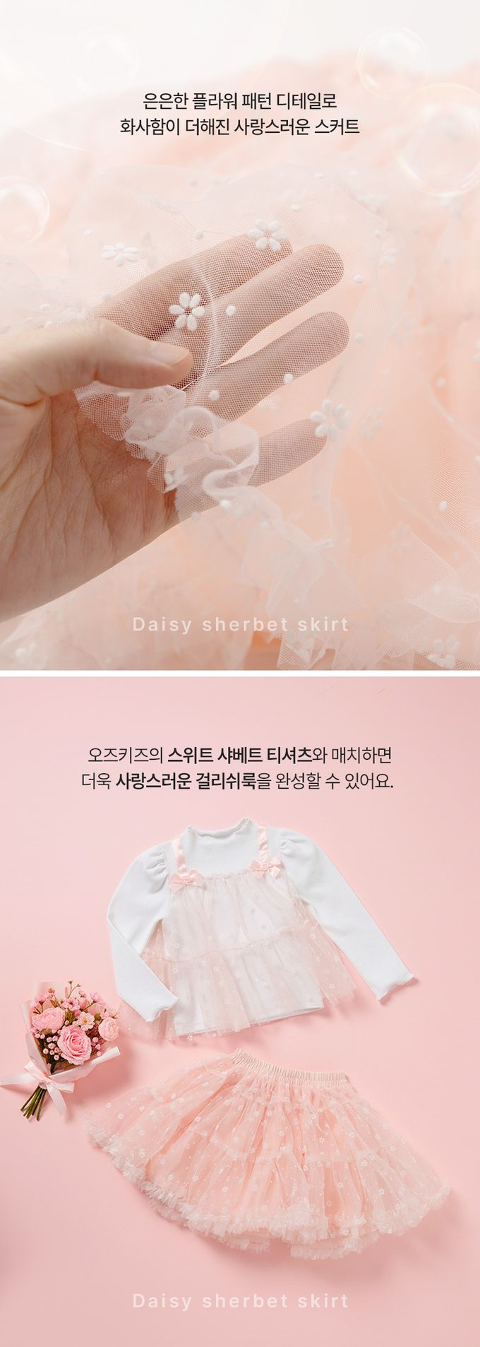 • 蓬鬆紗裙搭配花卉圖案,更顯甜美可愛