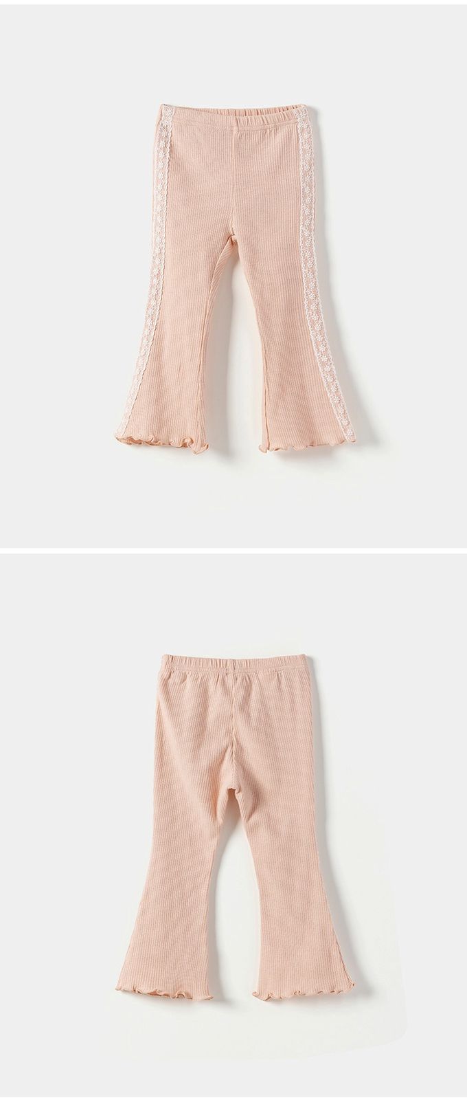 韓國 OZKIZ - 鬆緊腰蕾絲繡鑲邊彈力小喇叭褲-粉