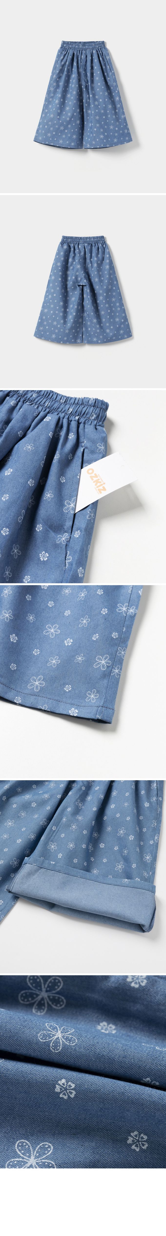 韓國 OZKIZ - 鬆緊腰花朵圖案點綴寬鬆長褲-丹寧藍