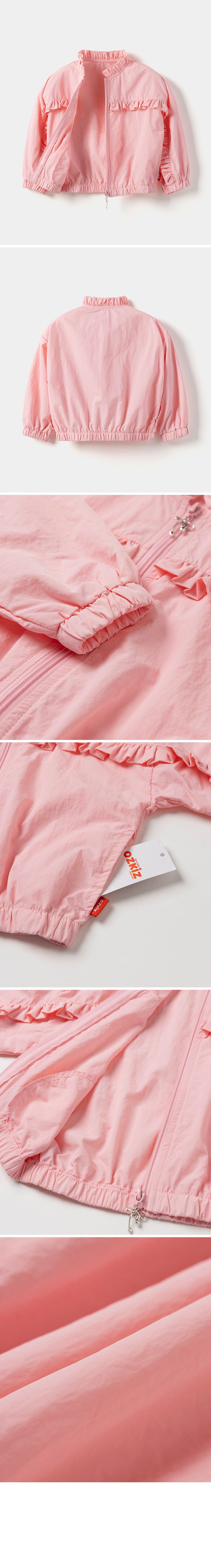 韓國 OZKIZ - 荷葉邊裝飾立領長袖擋風外套-粉