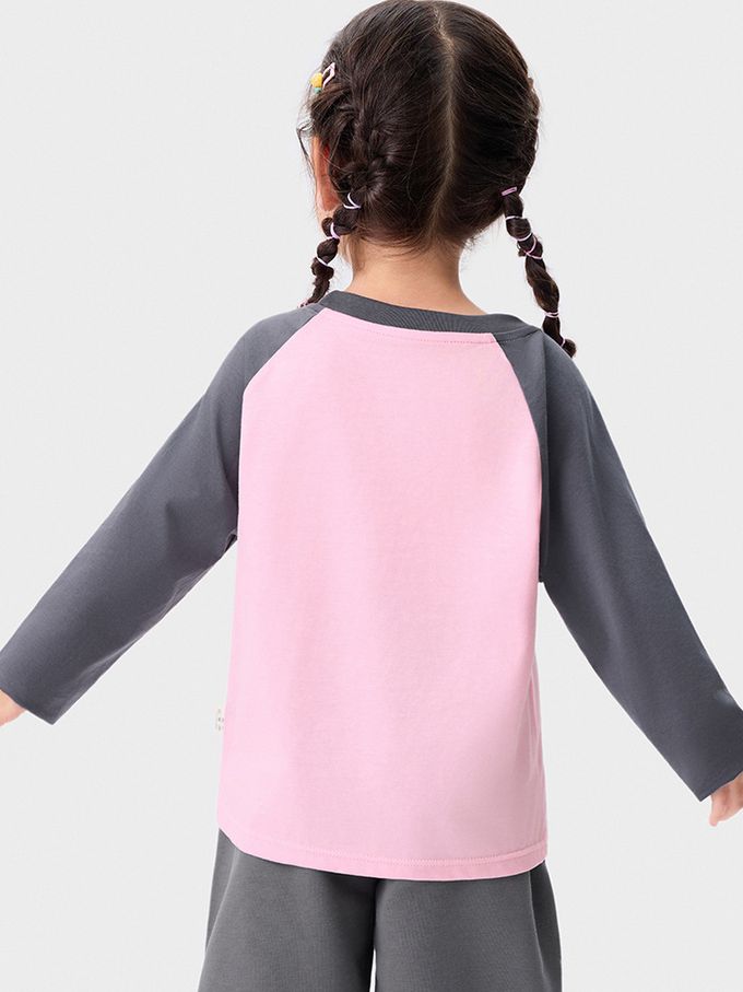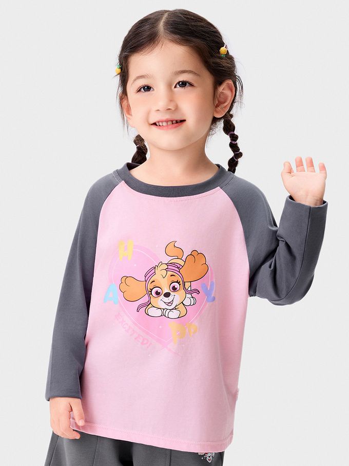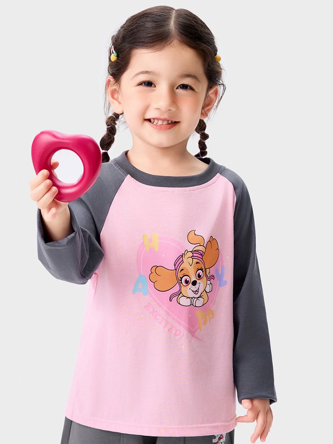 卡通汪汪隊純棉長袖上衣-卡通人物天天-拼色粉