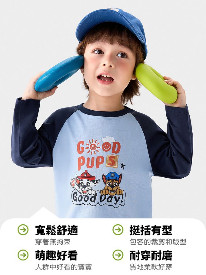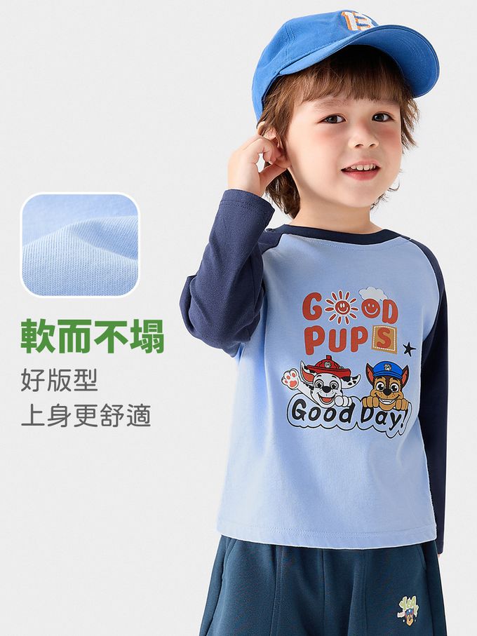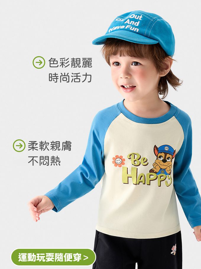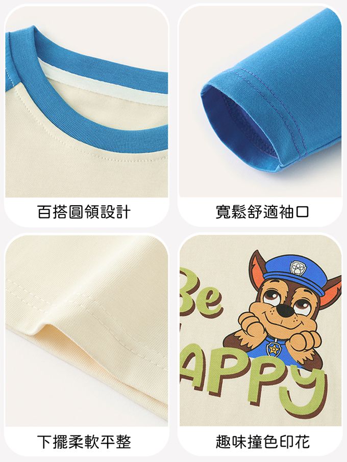 卡通汪汪隊純棉長袖上衣-卡通人物阿奇-拼色米白