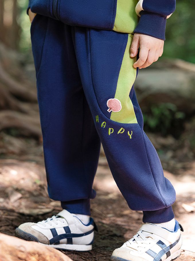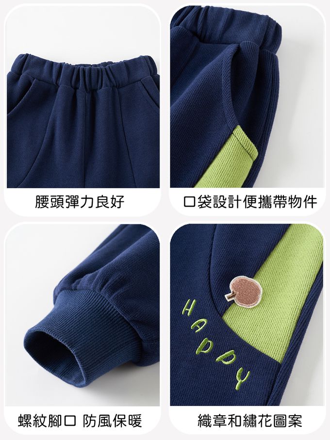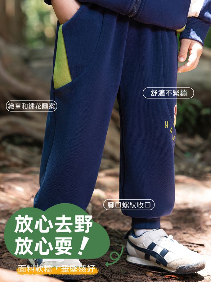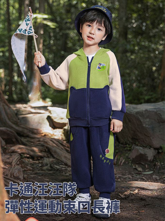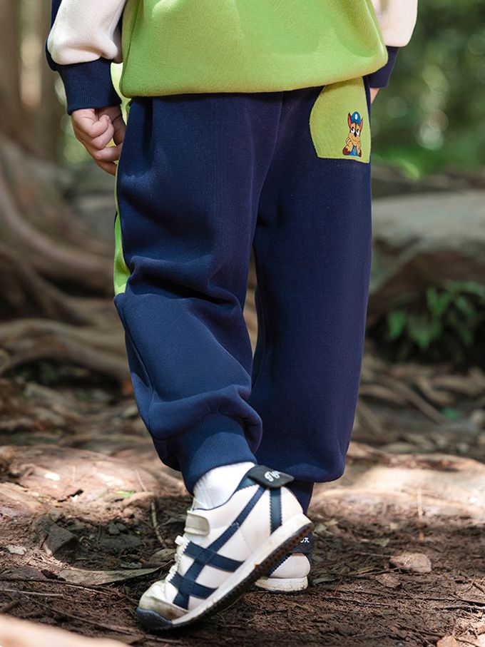 卡通汪汪隊彈性運動束口長褲-卡通人物阿奇-拼色藏青