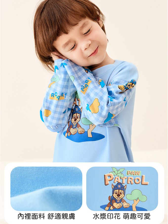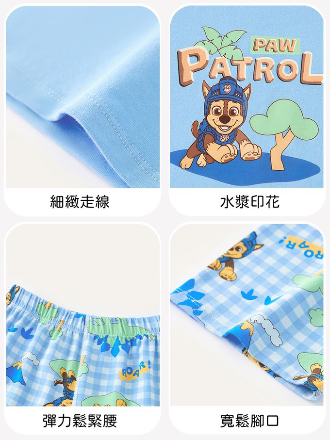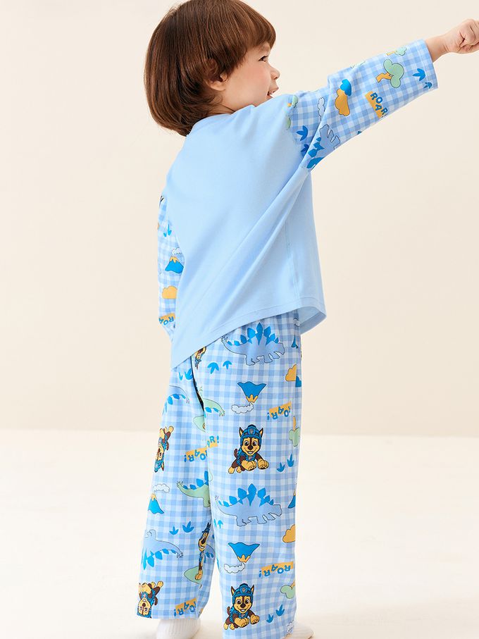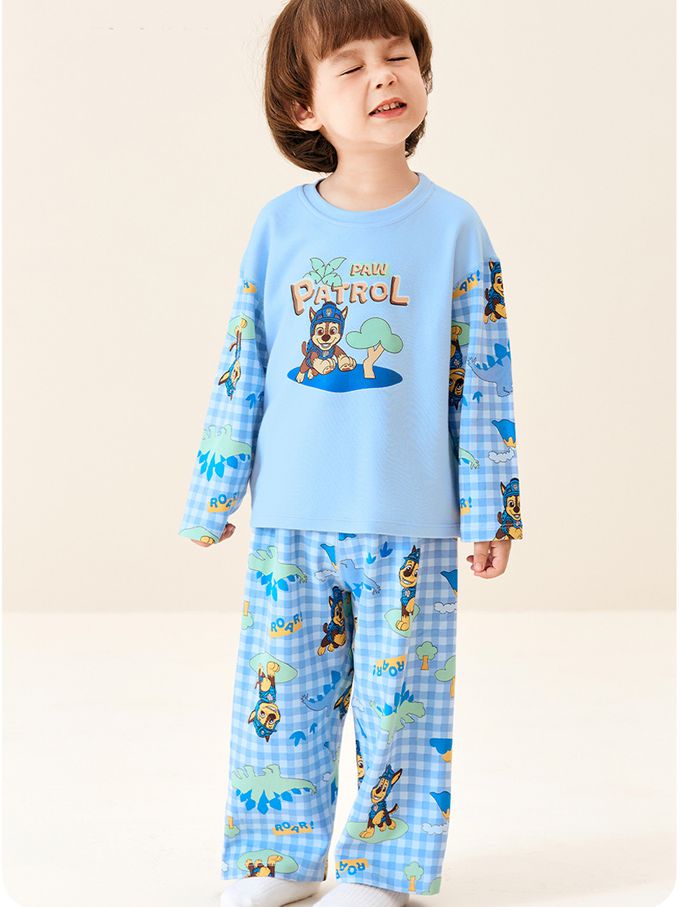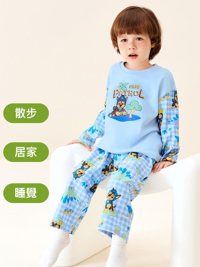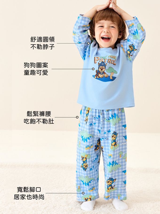 卡通汪汪隊長袖家居服套裝-卡通人物阿奇-格紋藍