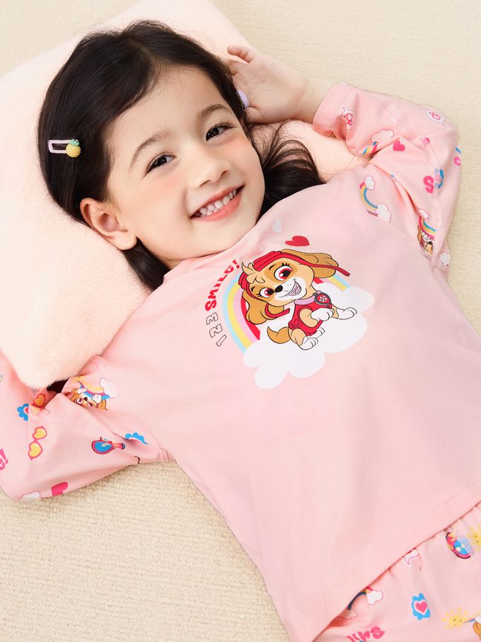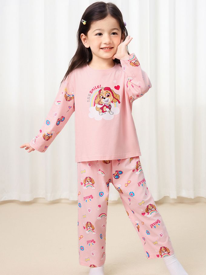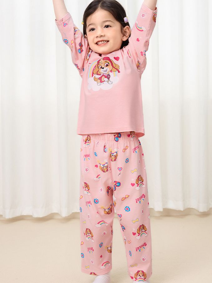 卡通汪汪隊長袖家居服套裝-卡通人物天天-粉色