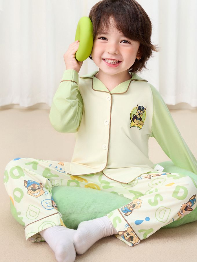 卡通汪汪隊開扣長袖家居服套裝-卡通人物阿奇-淺綠