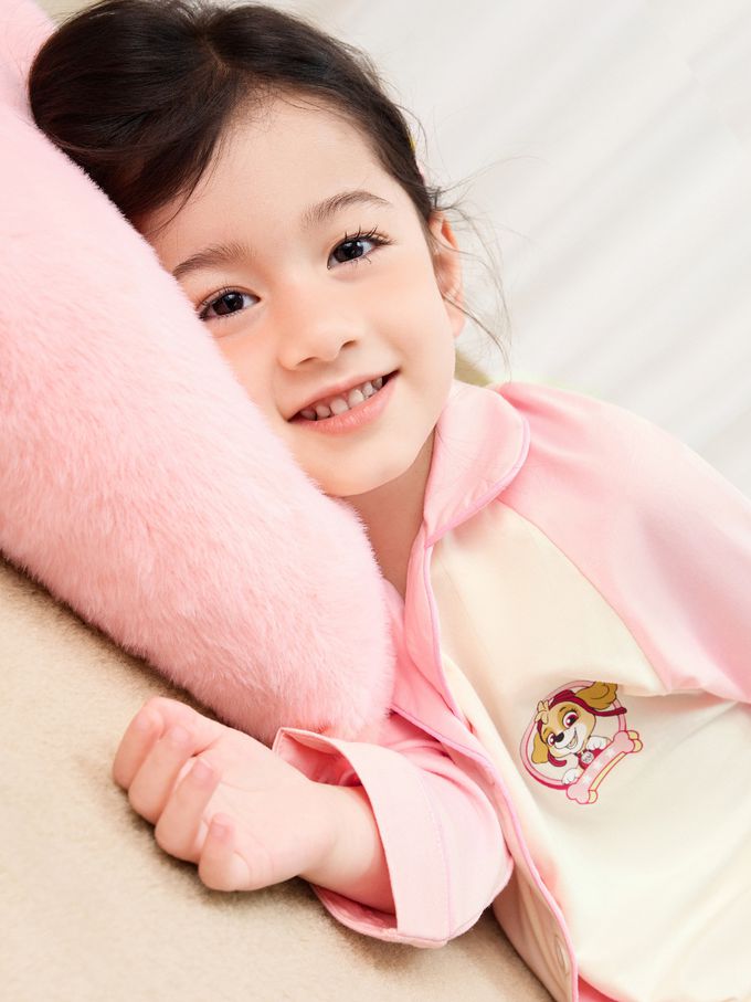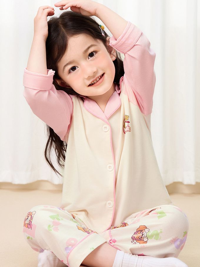 卡通汪汪隊開扣長袖家居服套裝-卡通人物天天-粉色