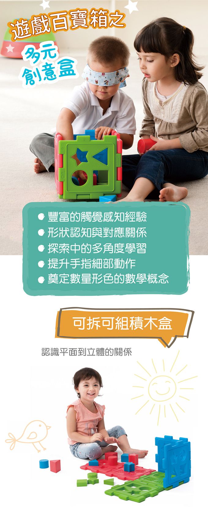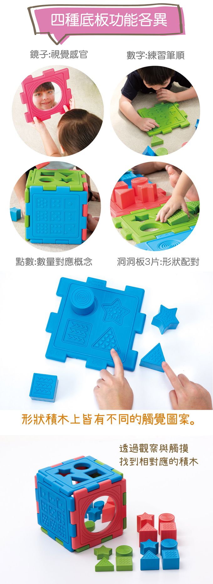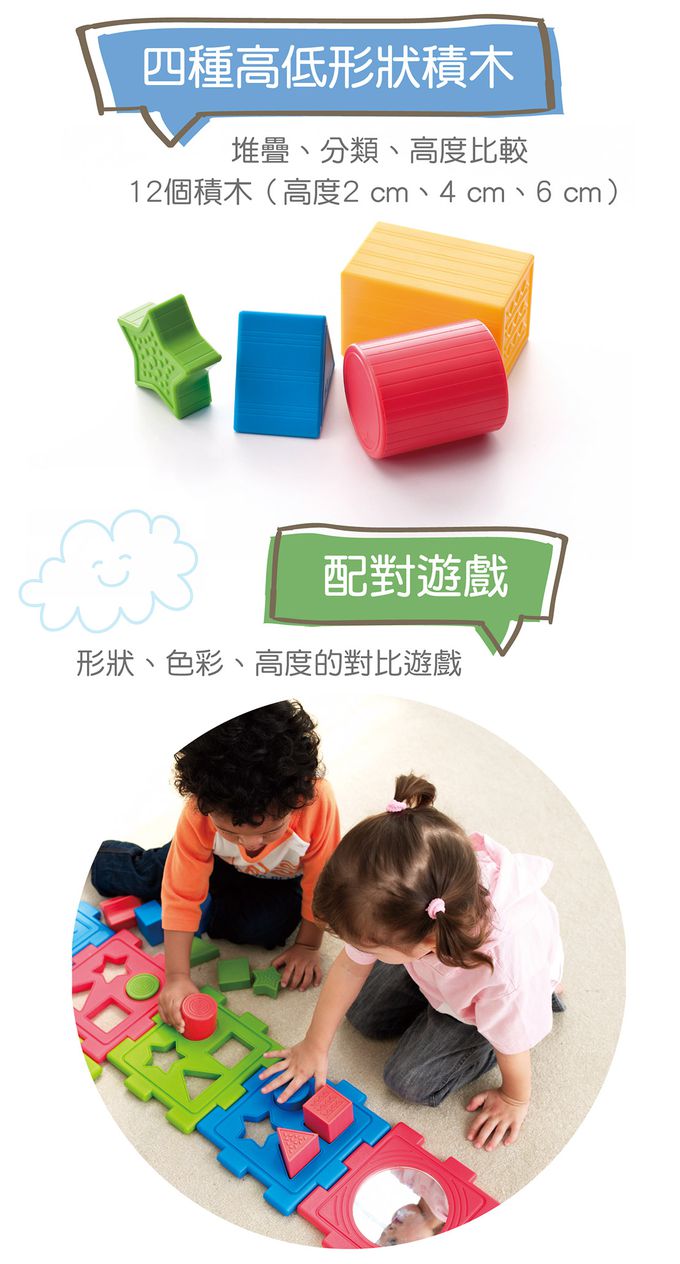 商品尺寸:底板-長21cm × 寬21cm × 厚1.5cm積木-長6cm × 寬6cm × 高2~6cm(此為約略尺寸)組件明細:共18件。底板-縷空 × 3、數字 × 1、骰子 × 1、鏡子 × 1,共6個。積木-圓柱 × 3、方形 × 3、三角 × 3、星形 × 3,共12個。(2cm、4cm、6cm 各1個)商品材質:PE、HIPS、PMMA產地:台灣★通過歐盟CE產品品質認證與美國ASTM安規