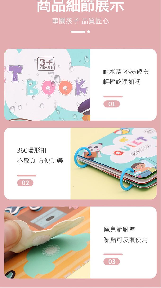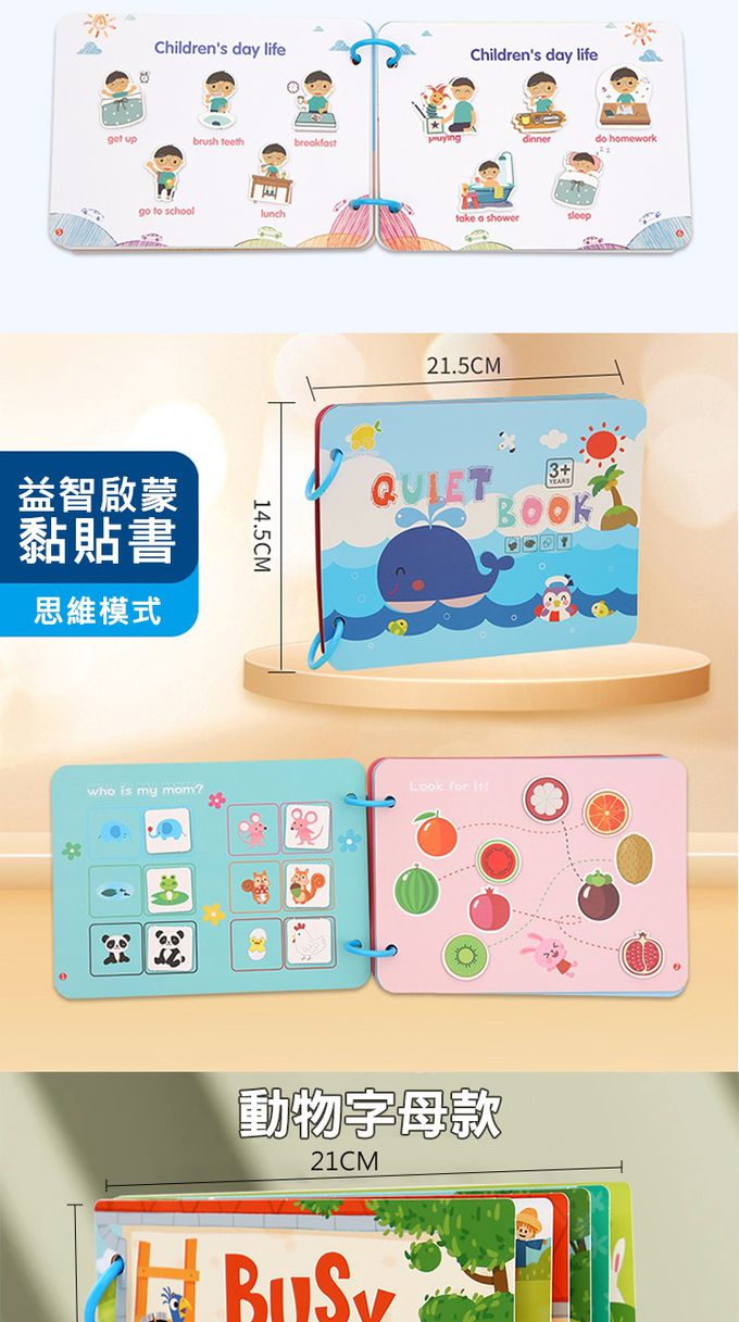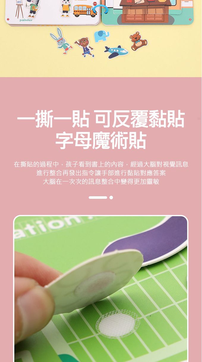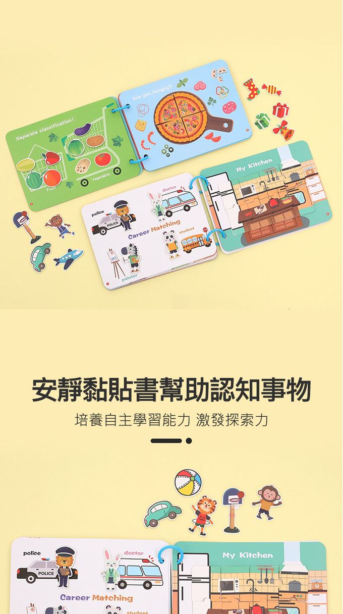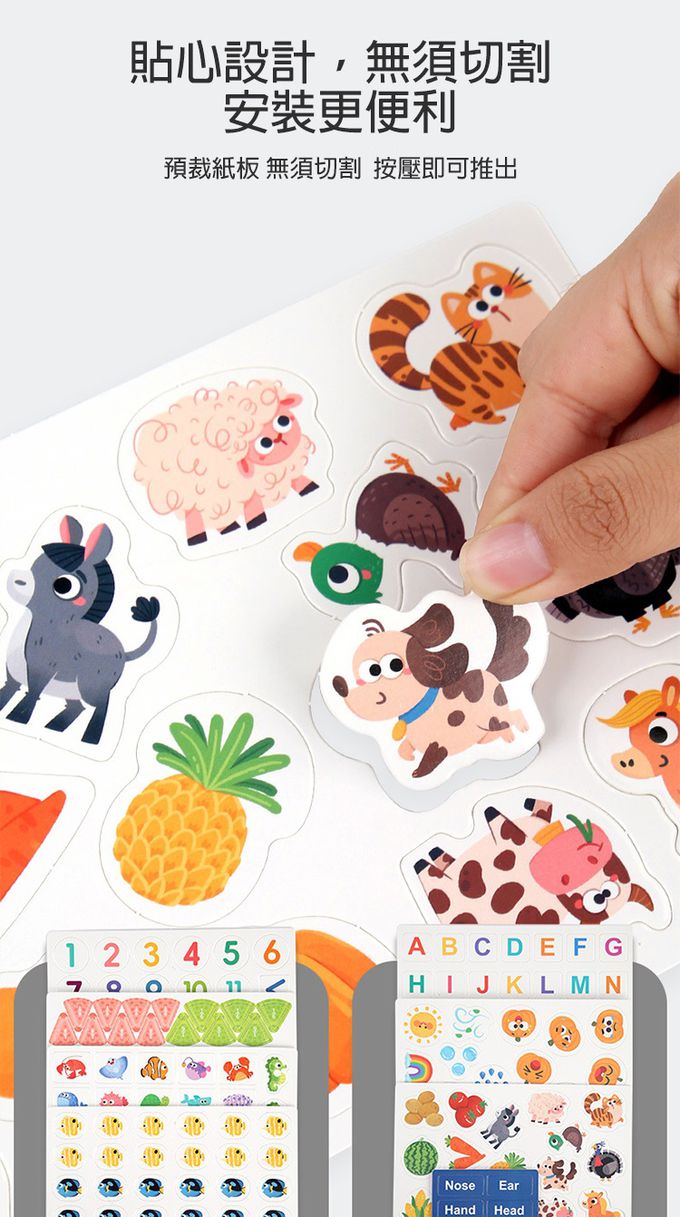 1.可重複使用的黏貼紙卡,他們可以隨心所欲地將貼紙貼在書的任何位置,也可以圖本頁面學習配置與認知。