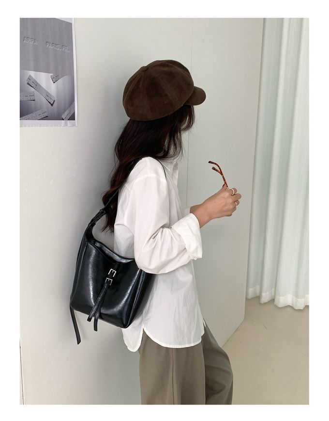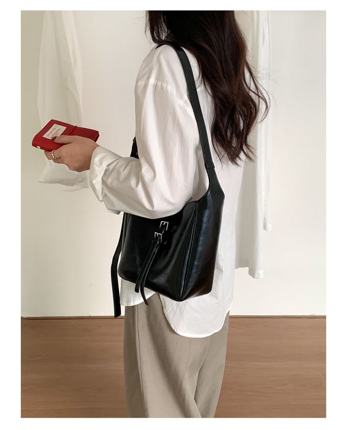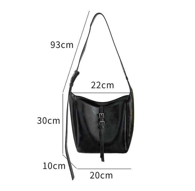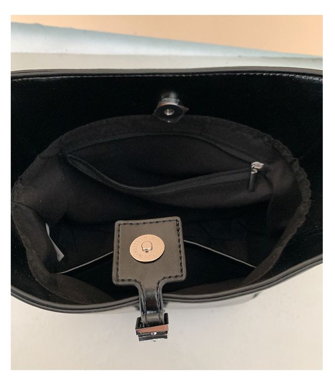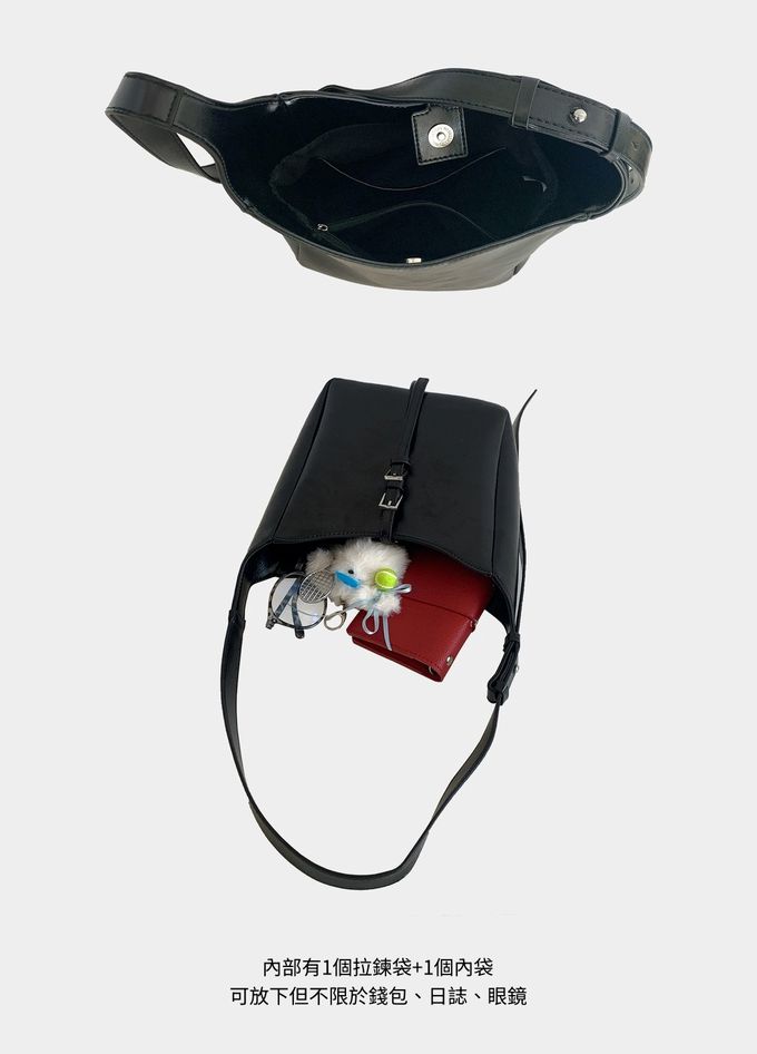 韓系小眾時尚斜背/單肩水桶方包-黑