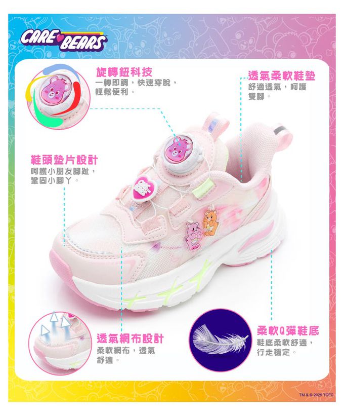 CareBears 彩虹熊 童鞋 輕量旋轉扣運動鞋 CBKR59803-柔軟舒適4D鞋墊-粉色-(中大童段)