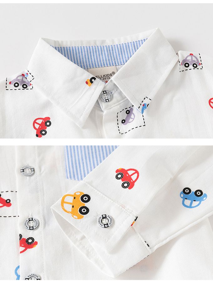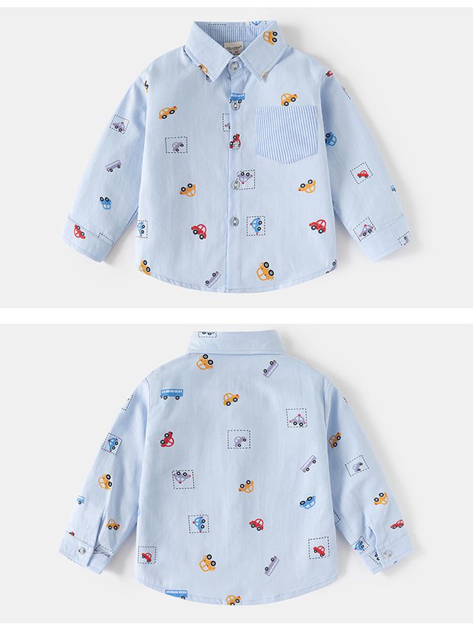 經典口袋長袖襯衫-小車車-藍色