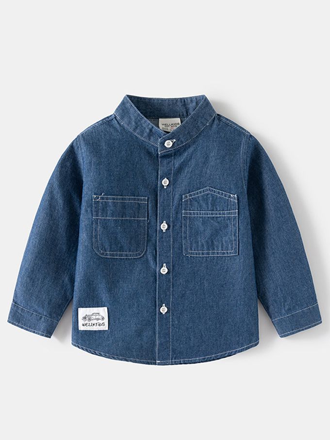 品名:立領牛仔長袖襯衫