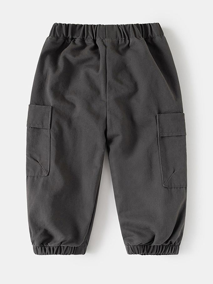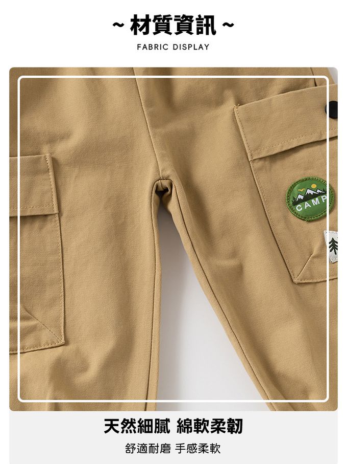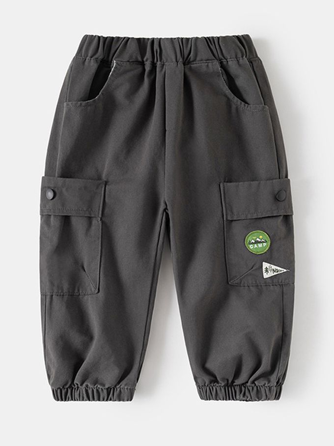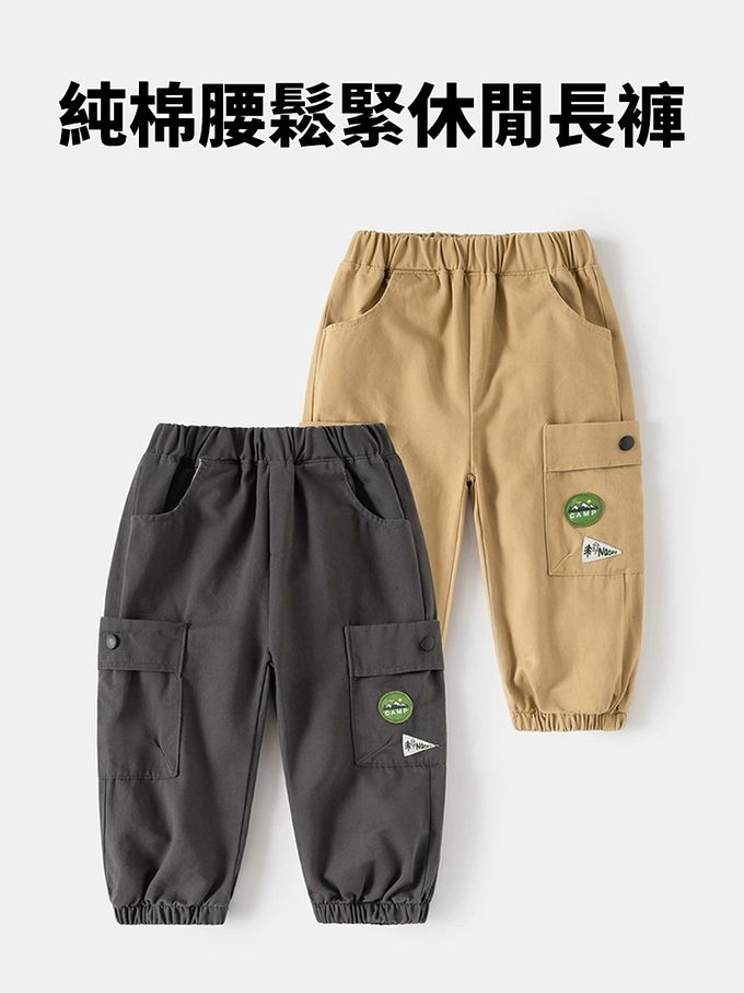 純棉腰鬆緊休閒長褲-徽章口袋-灰色