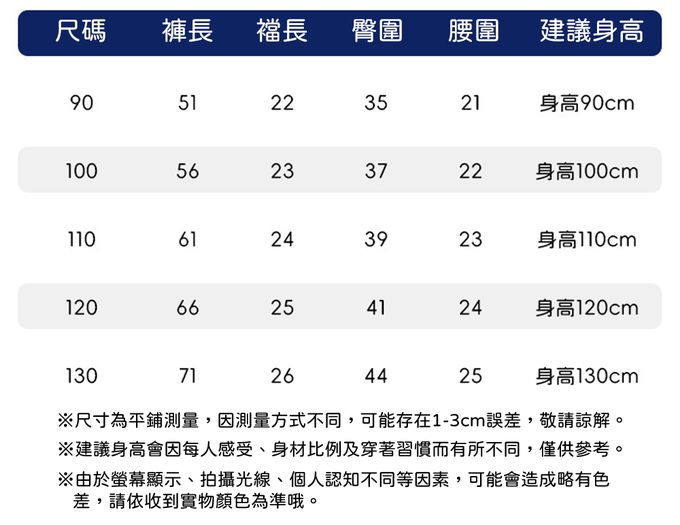 90cm、100cm、110cm、120cm、130cm