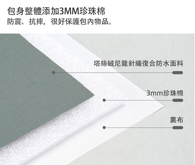 包身添加3mm珍珠棉,防震抗摔保護包內物品
