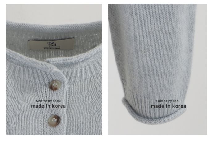 韓國女裝連線 - 55%美麗諾羊毛輕盈暖感針織外套-淺藍 (FREE)