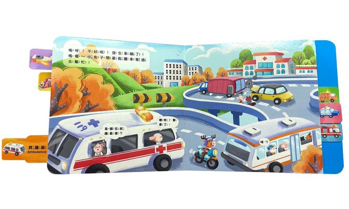 本書收錄火車、飛機、救護車、警車、消防車、垃圾車,