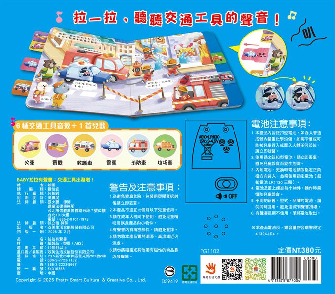 BABY拉拉有聲書:交通工具出發啦!(6種交通工具音效+1首兒歌)