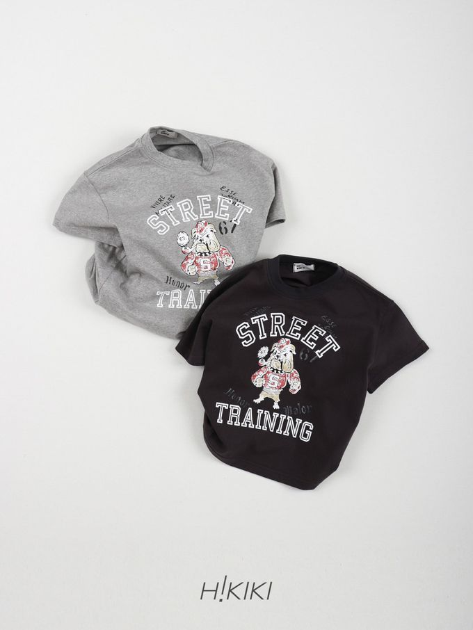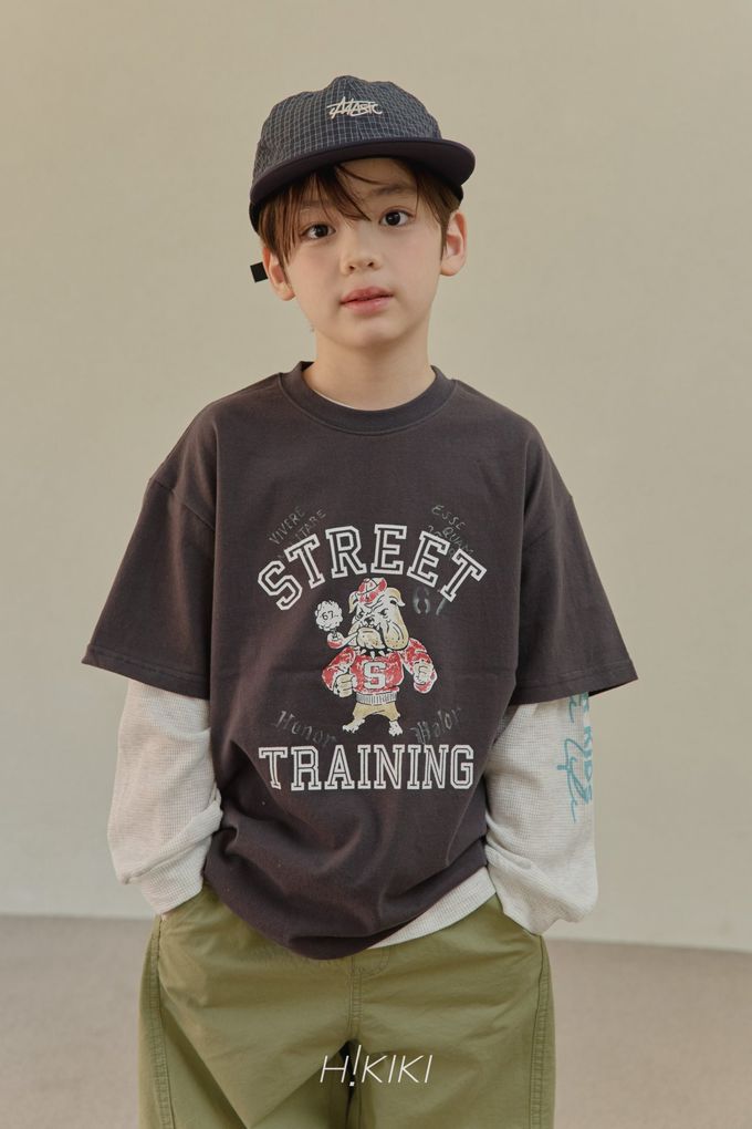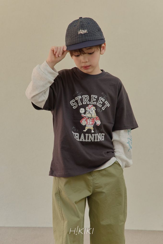 韓國南大門童裝 - HIKIKI 街頭風鬥牛犬圖案短袖上衣-深灰
