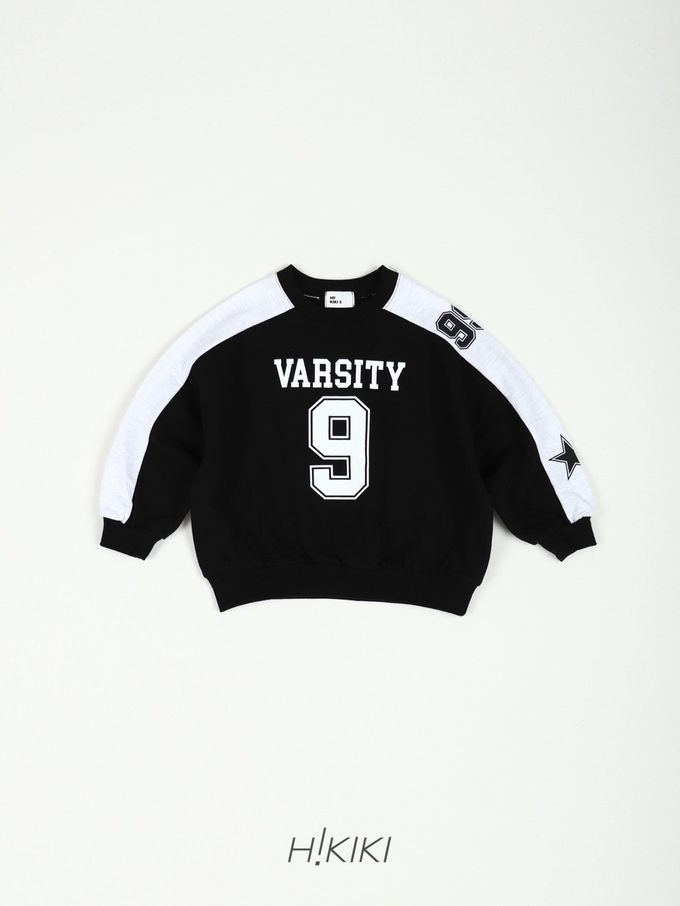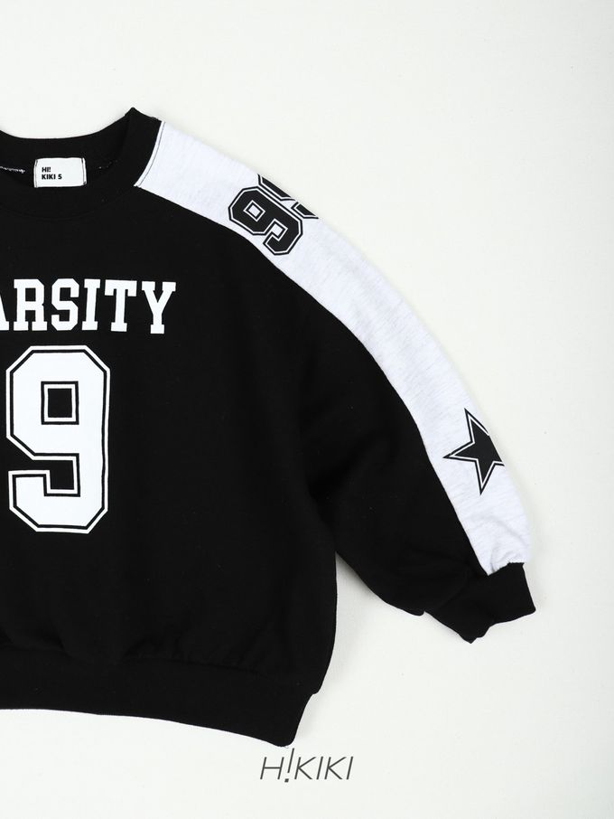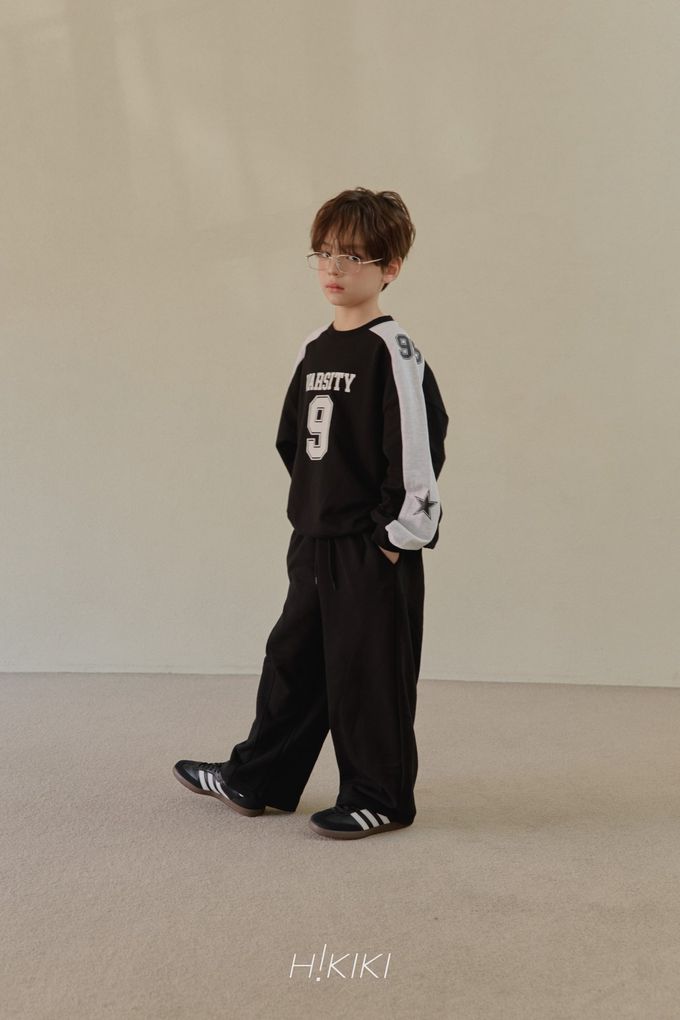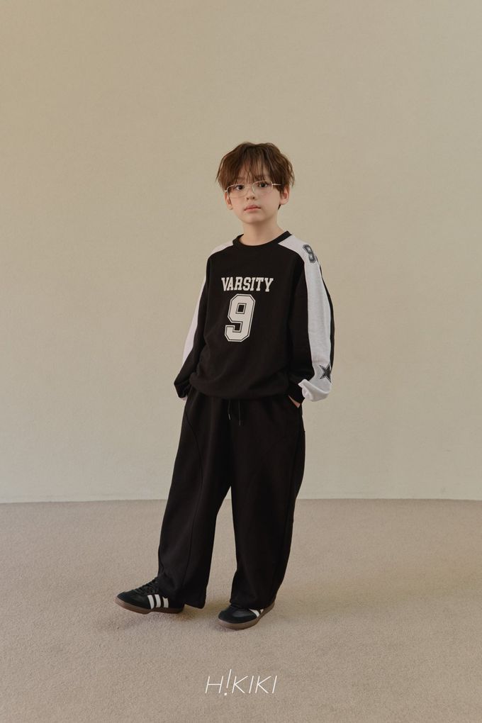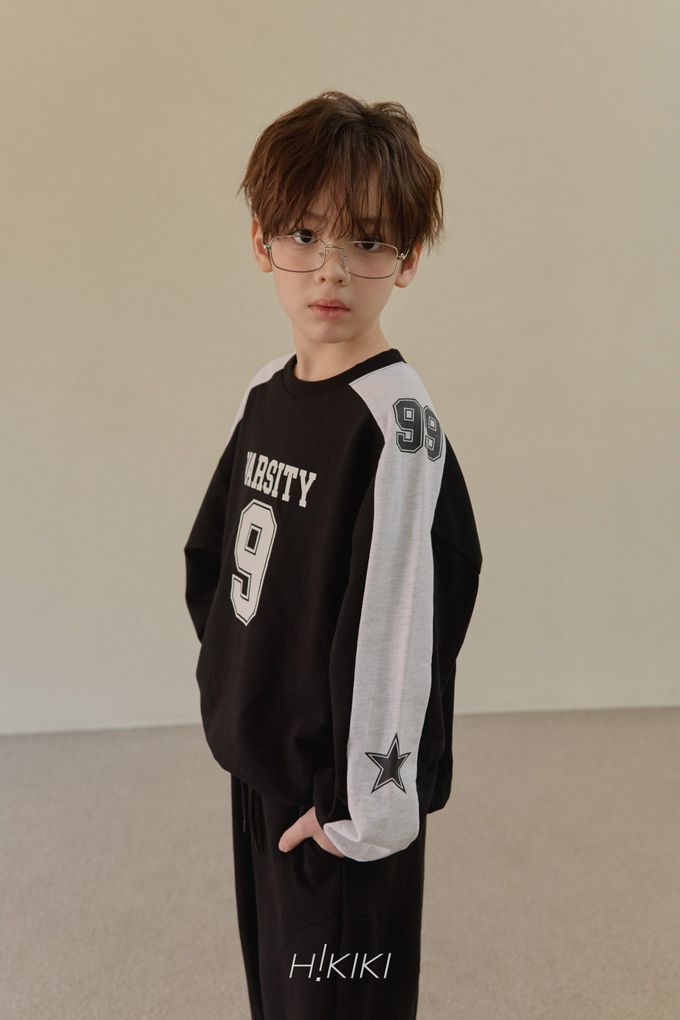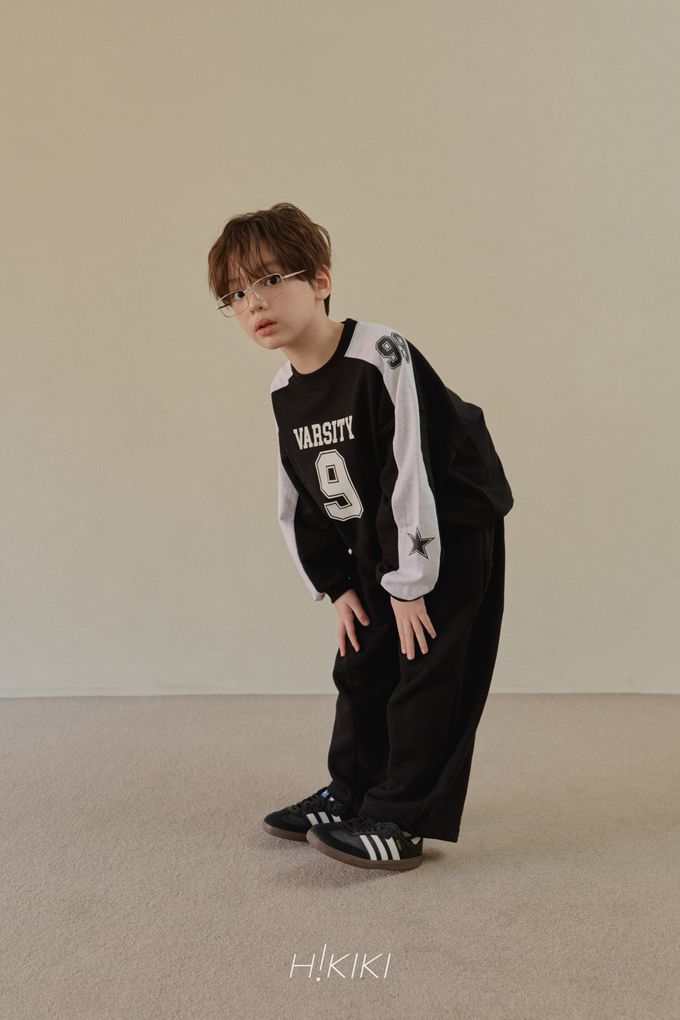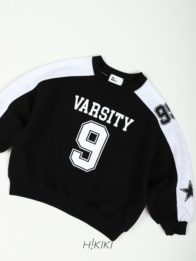 韓國南大門童裝 - HIKIKI 街頭風格拼色長袖大學T-數字9-黑