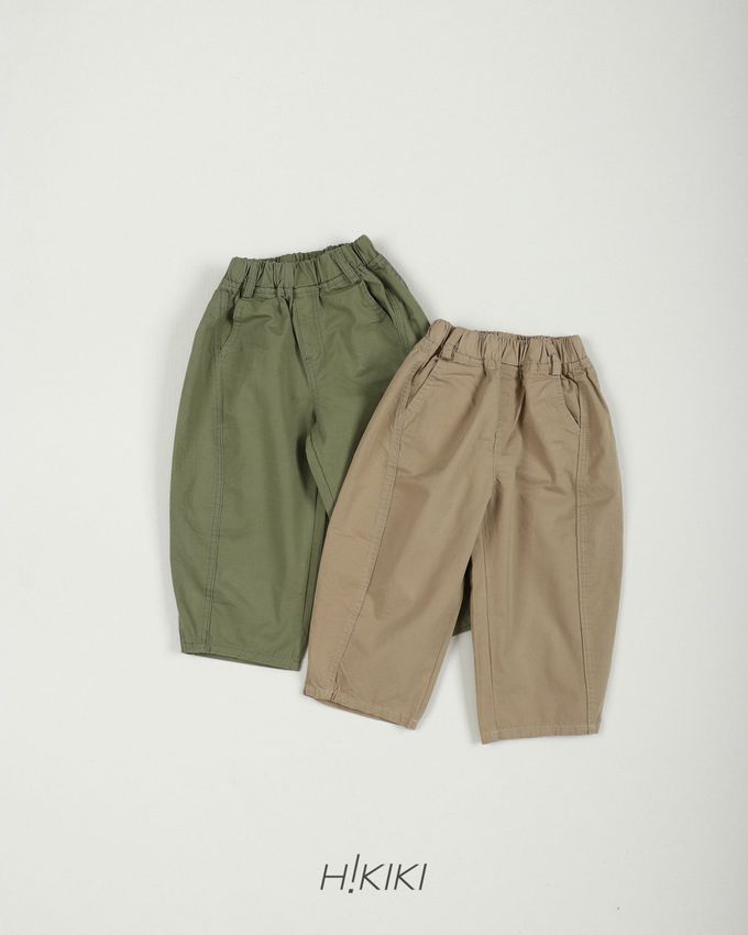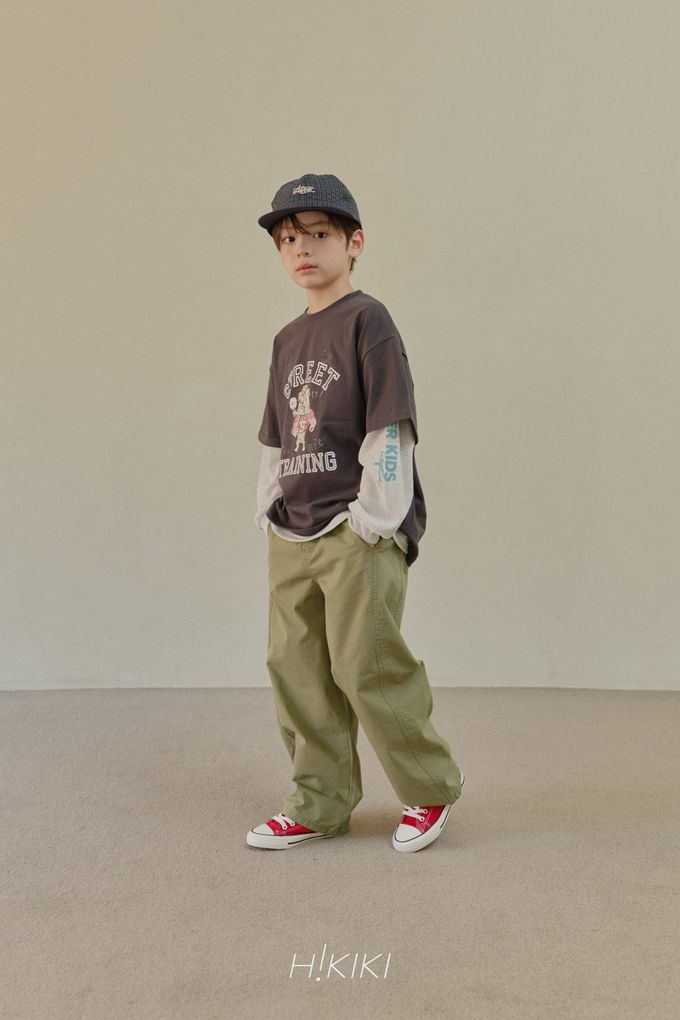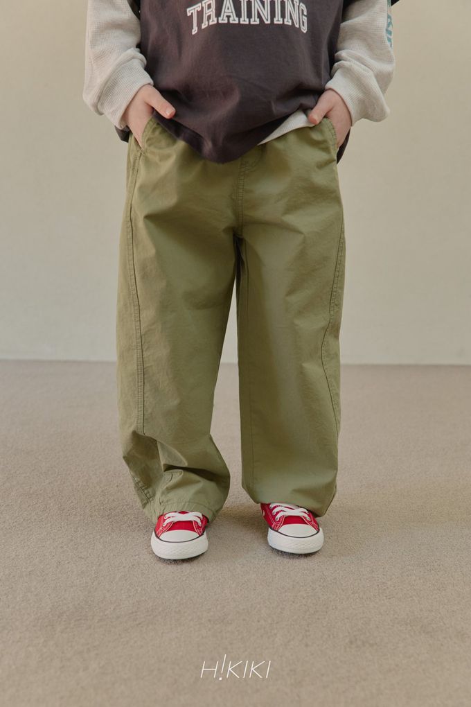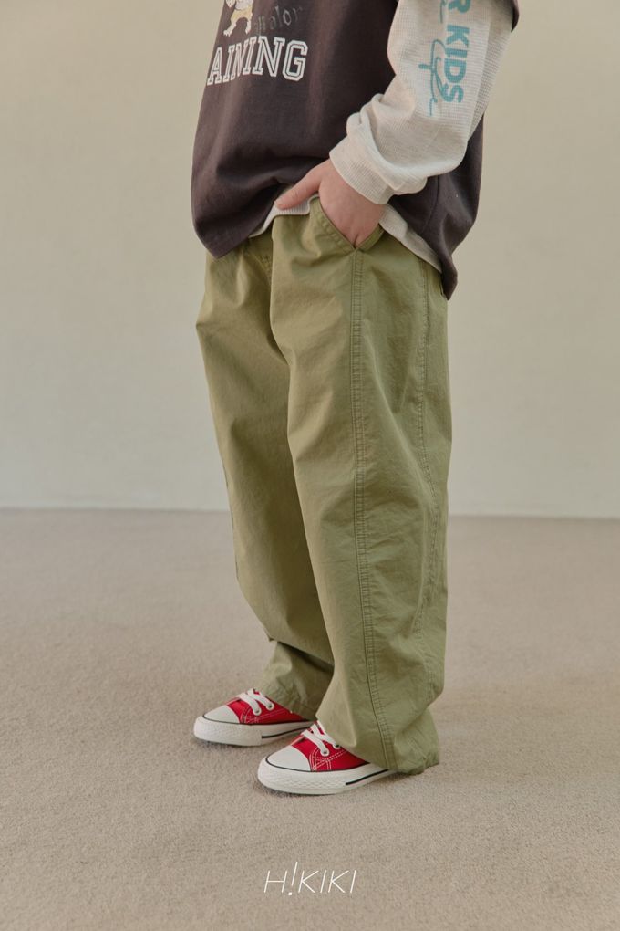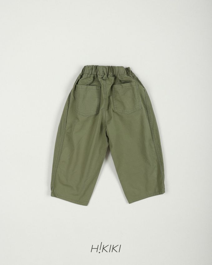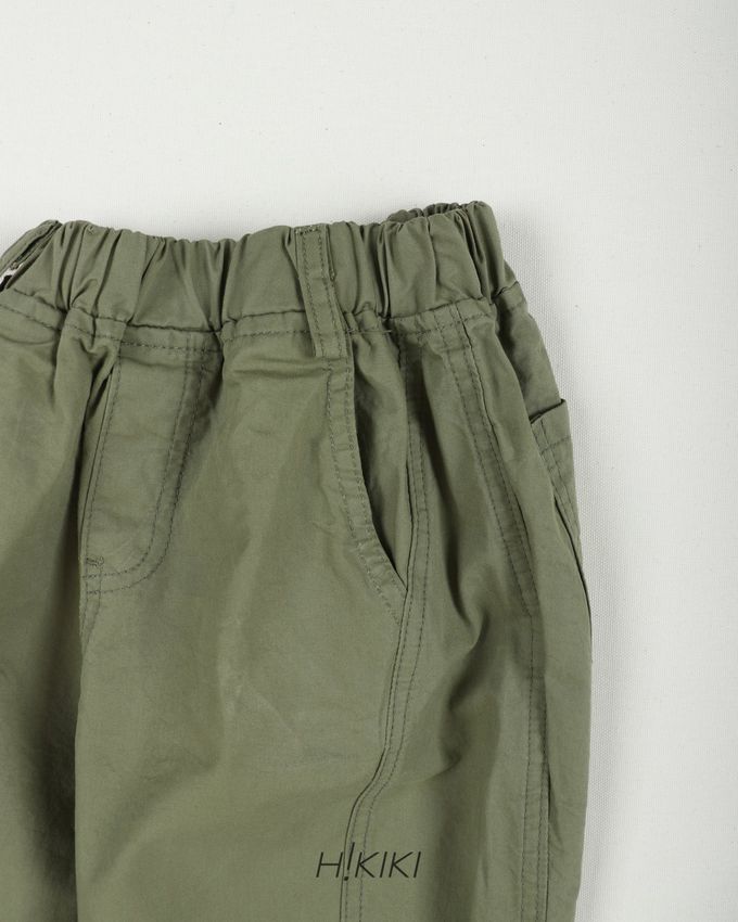 韓國南大門童裝 - HIKIKI 鬆緊腰立體廓形剪裁工裝長褲-軍綠