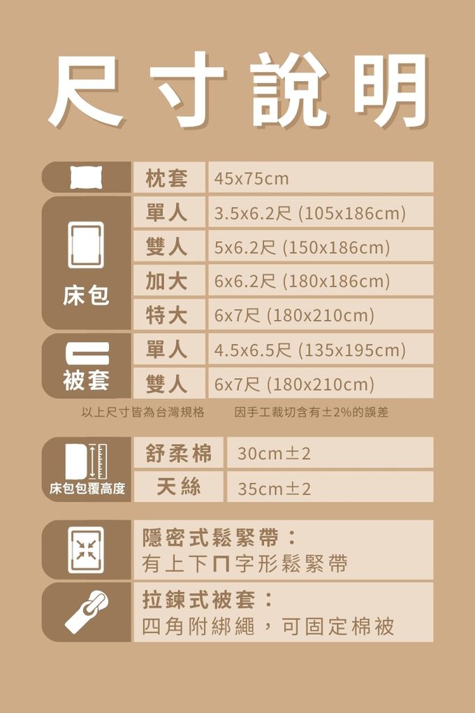 ■隱密式鬆緊帶:有―上下式ㄇ字形鬆緊帶;被套內綁繩:四角四邊