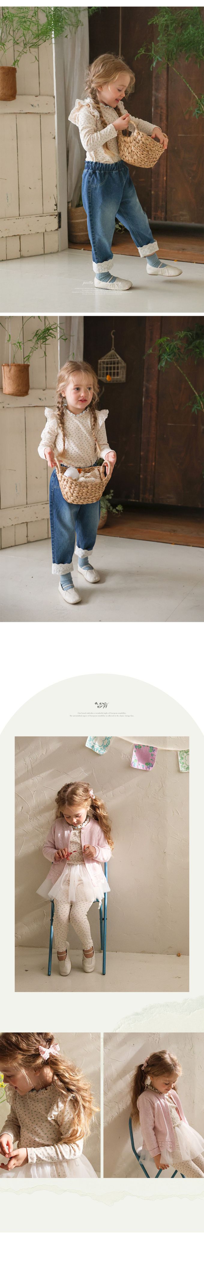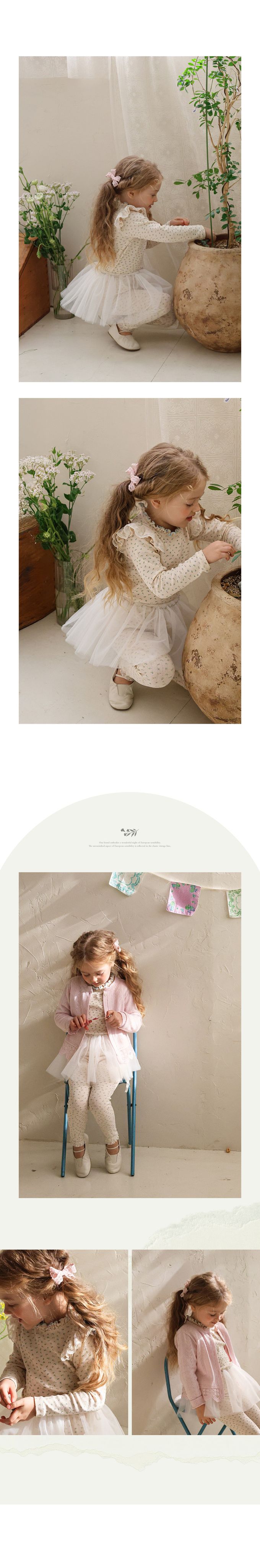 韓國南大門童裝 - Puellaflo 碎花蕾絲飛飛袖坑條長袖上衣-米