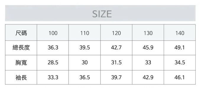 1. 尺寸表單位皆為公分(cm),實際尺寸會因布料彈性、水洗、測量起迄點等因素略有誤差。