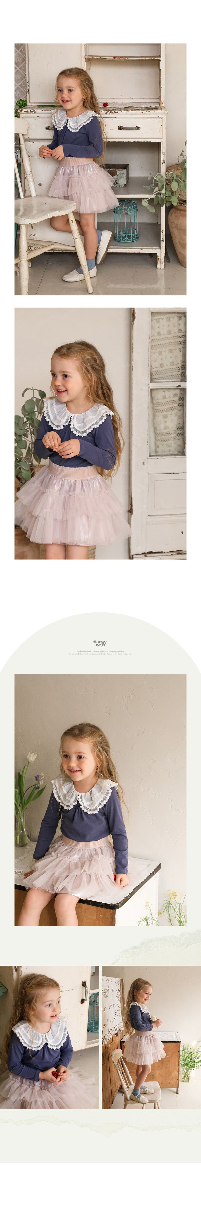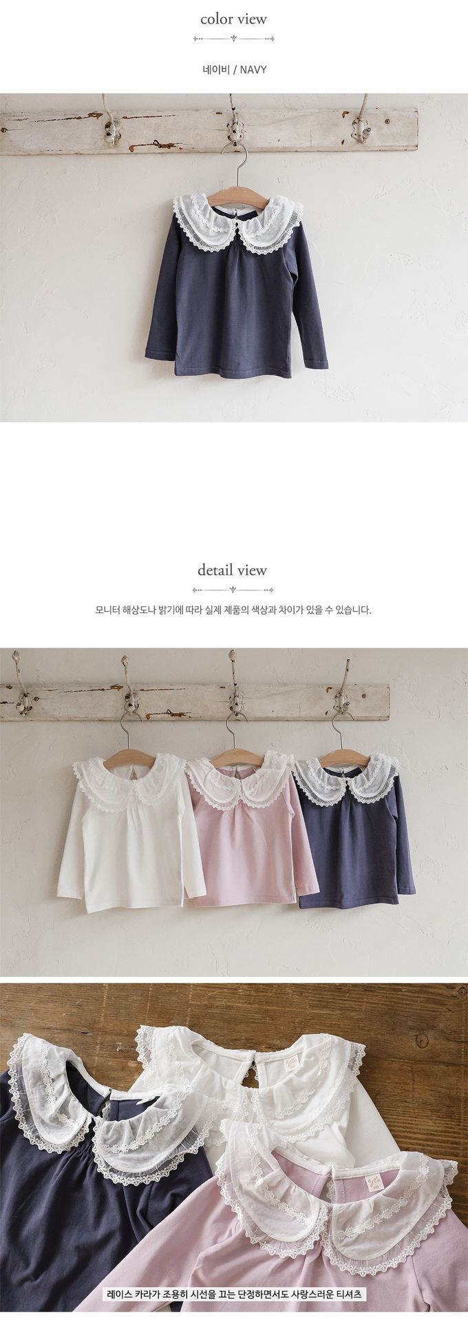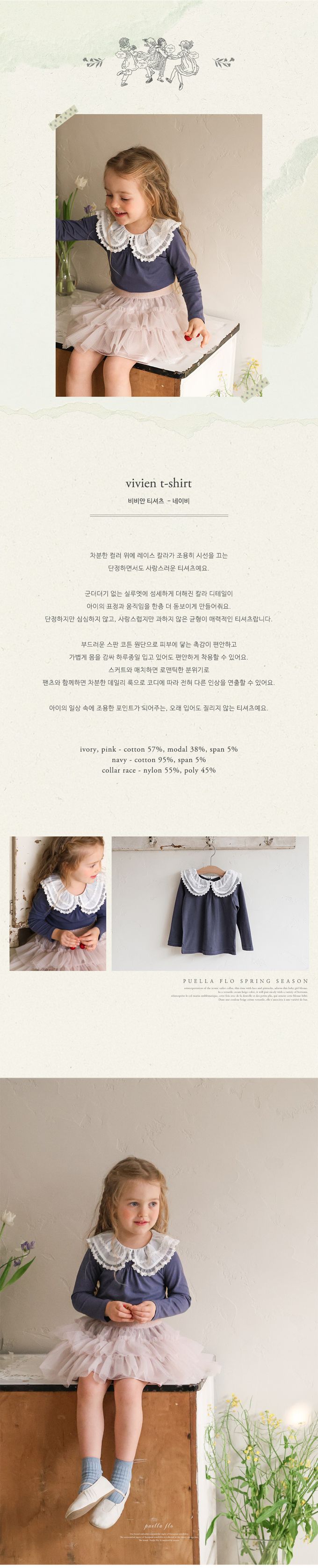 韓國南大門童裝 - Puellaflo 法式浪漫精緻蕾絲翻領長袖上衣-海軍藍