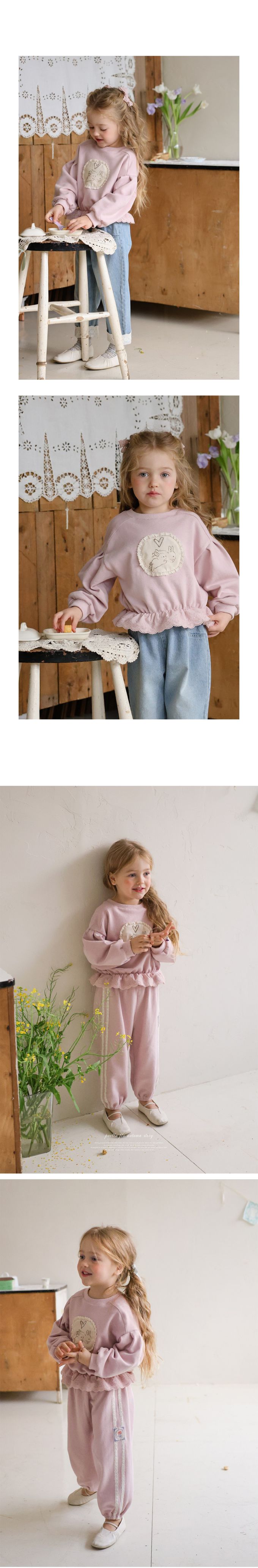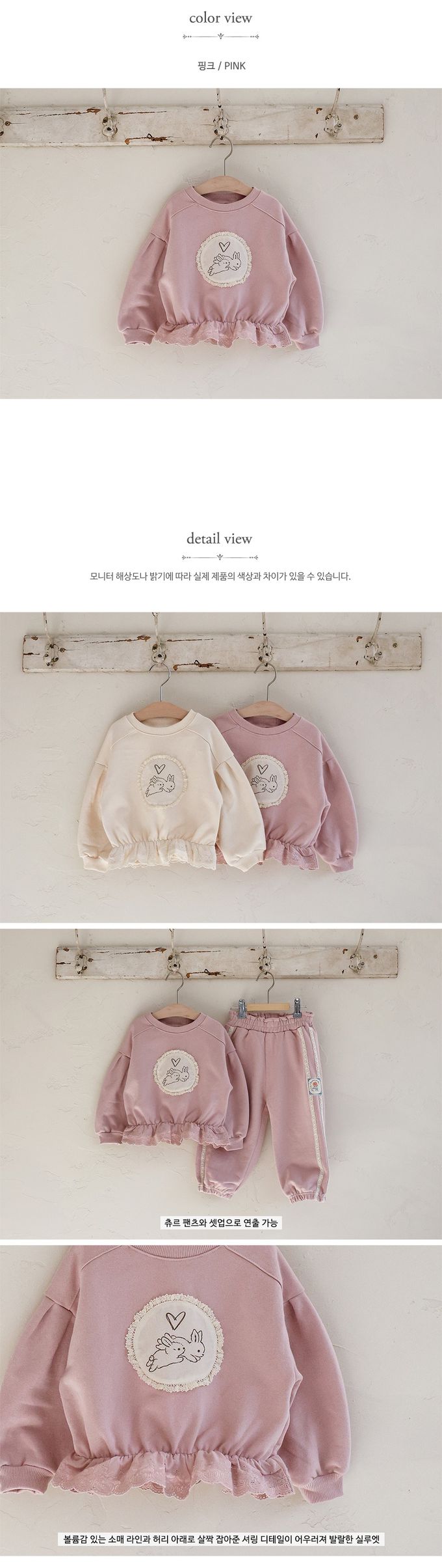 韓國南大門童裝 - Puellaflo 俏皮兔拼接蕾絲布長袖大學T-粉