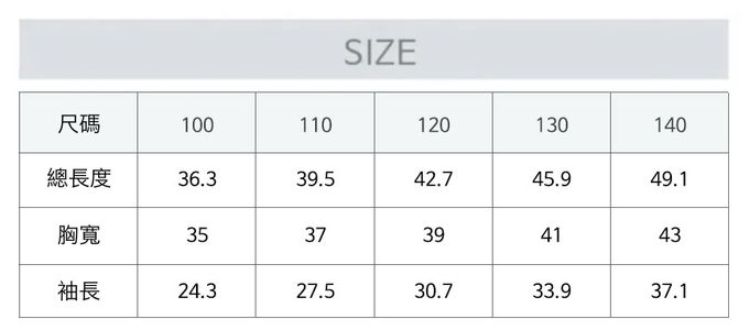 1. 尺寸表單位皆為公分(cm),實際尺寸會因布料彈性、水洗、測量起迄點等因素略有誤差。