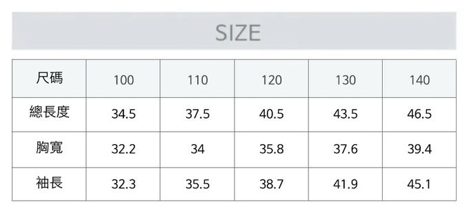 1. 尺寸表單位皆為公分(cm),實際尺寸會因布料彈性、水洗、測量起迄點等因素略有誤差。