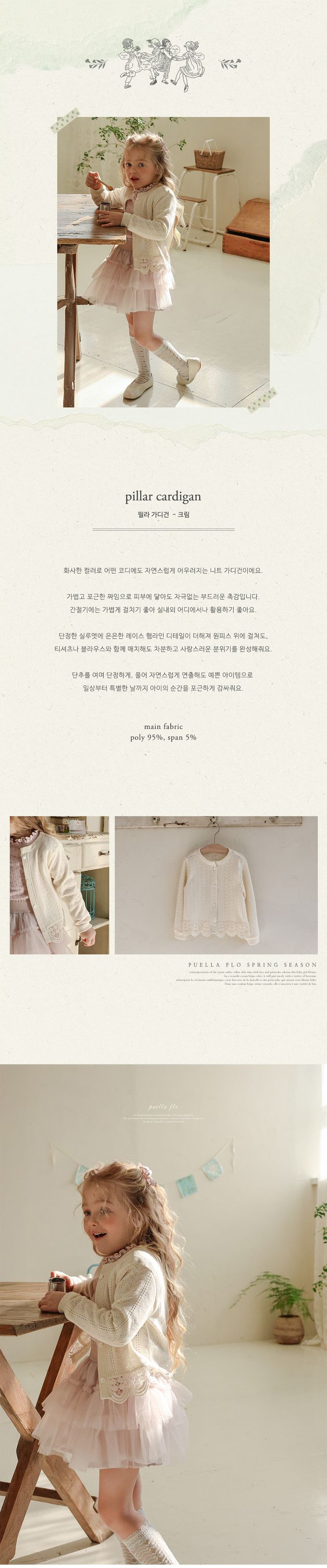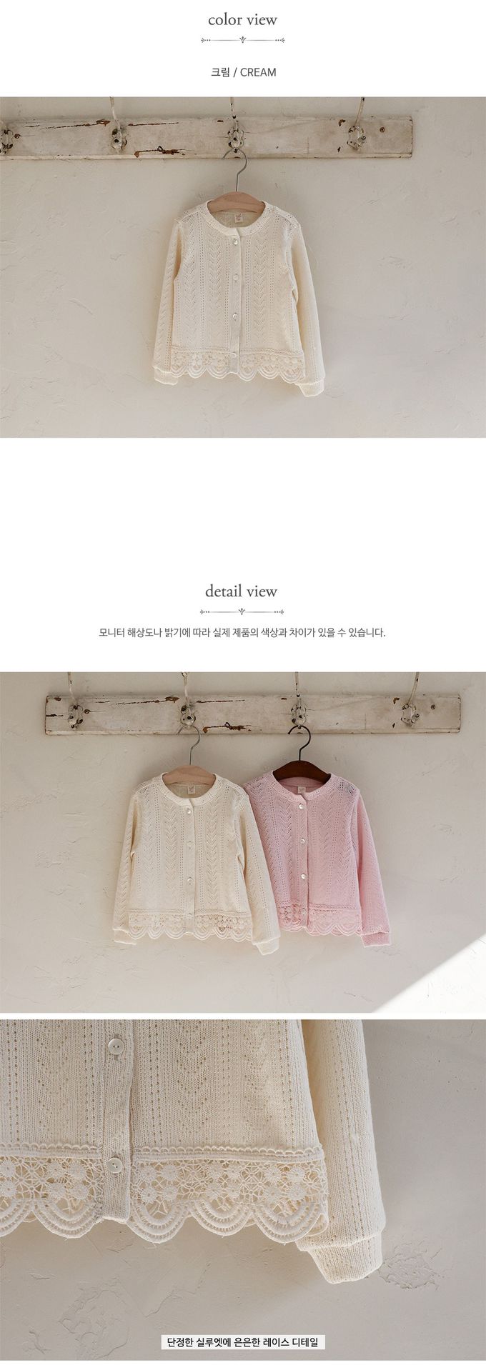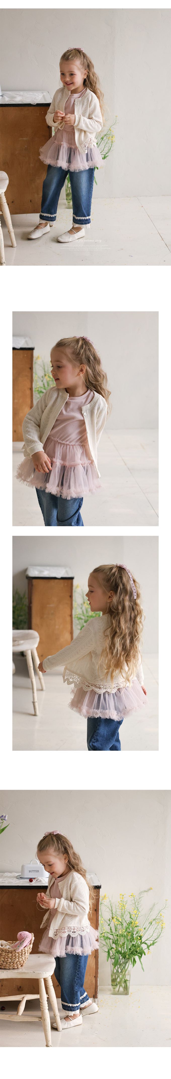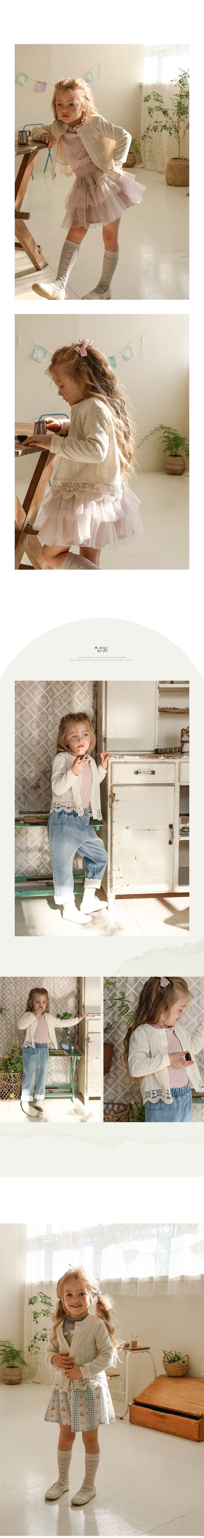 韓國南大門童裝 - Puellaflo 唯美鏤空緹花圓領針織外套-米