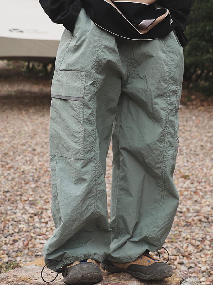 防潑水防風休閒長褲-下擺抽繩-灰綠