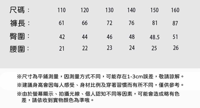 110cm、120cm、130cm、140cm、150cm、160cm