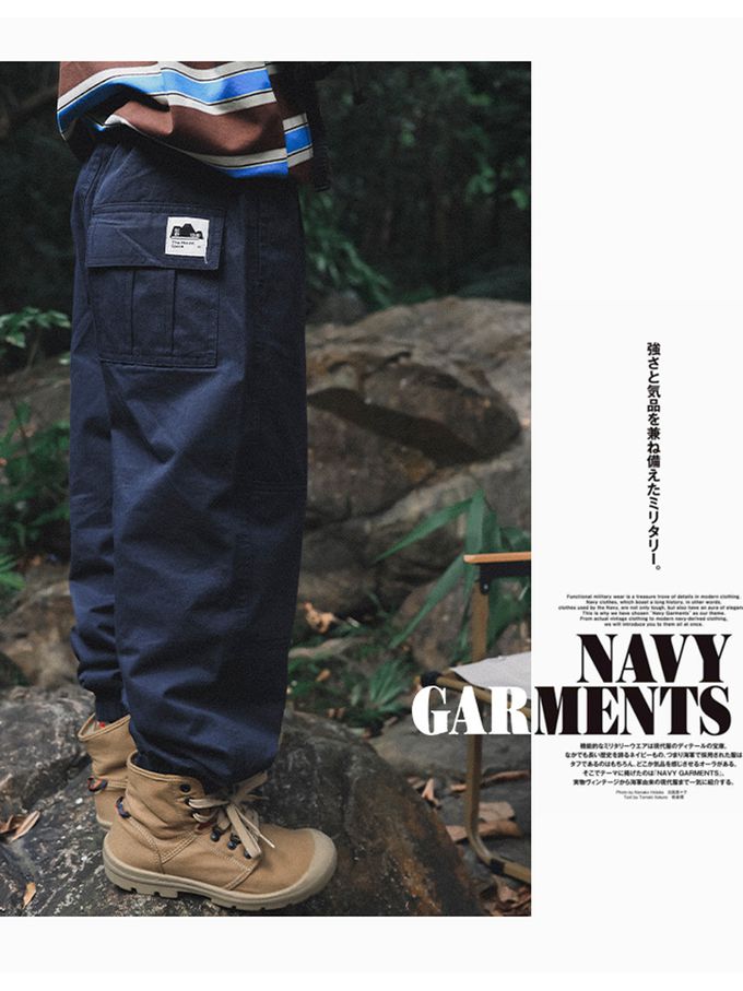 Y B S - 純棉耐磨後口袋工裝休閒長褲-藏青