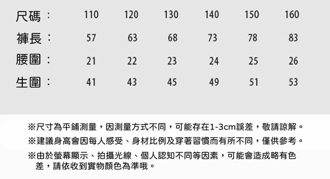 110cm、120cm、130cm、140cm、150cm、160cm