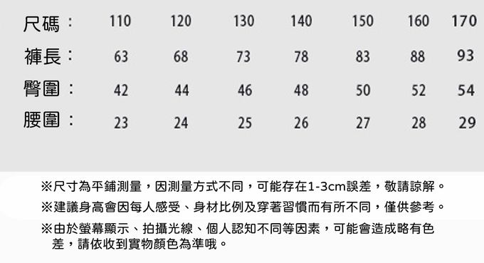 110cm、120cm、130cm、140cm、150cm、160cm、170cm