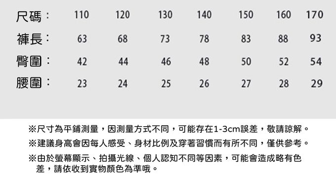 110cm、120cm、130cm、140cm、150cm、160cm、170cm