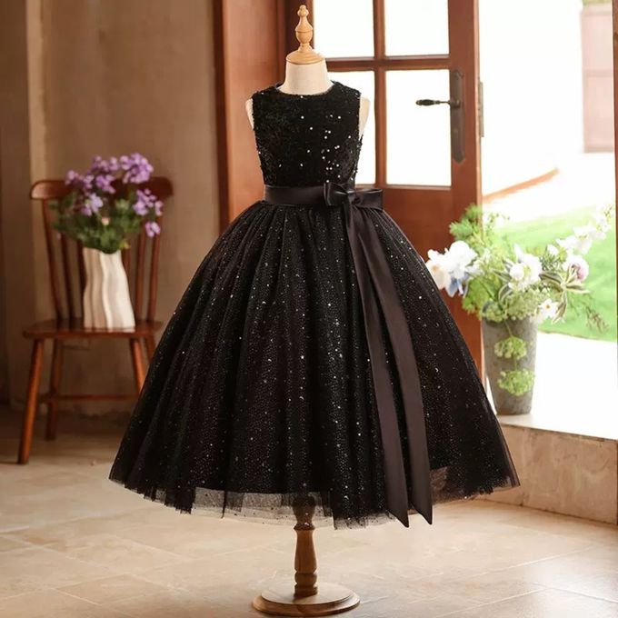 品名:優雅刺繡亮片亮片灑粉網紗裙無袖長禮服