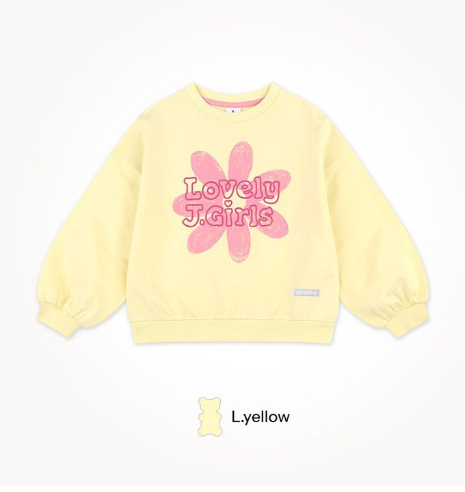 韓國 Jelispoon - 手繪花朵圖案長袖大學T-黃