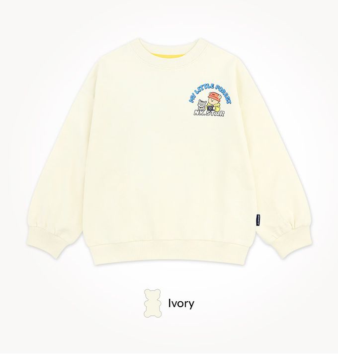 韓國 Jelispoon - 熊熊貓咪圖案長袖大學T-米黃