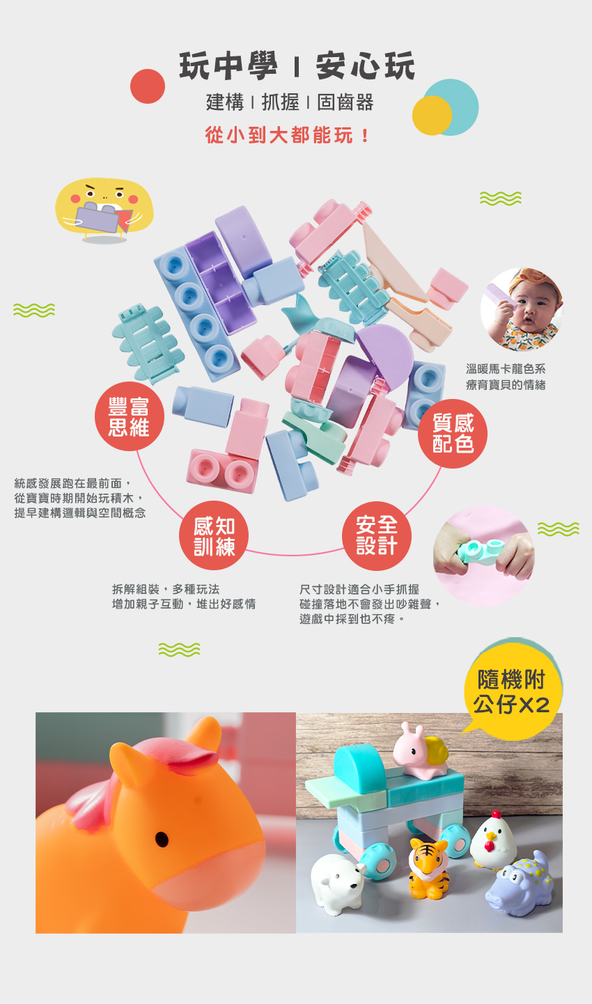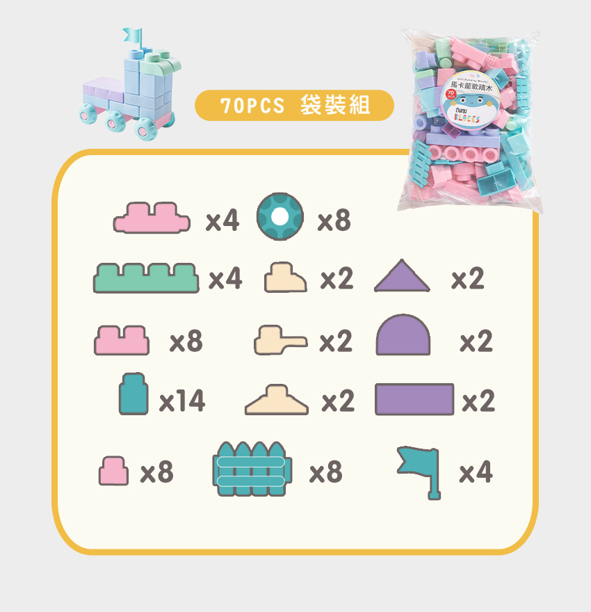 品名:馬卡龍軟積木(寶寶感統)|70 pcs 袋裝
