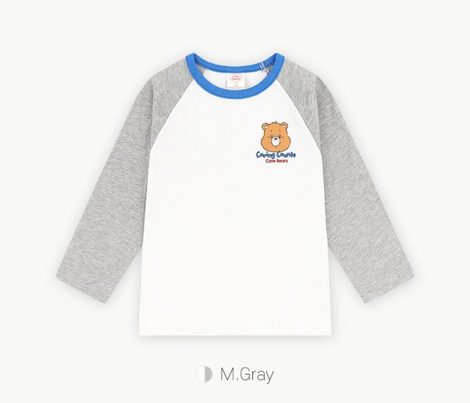 韓國 Care Bears - 聯名款熊熊圖案拼色長袖上衣-白X灰