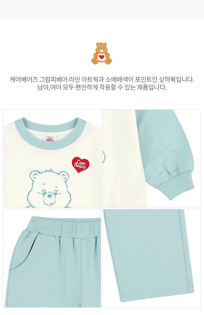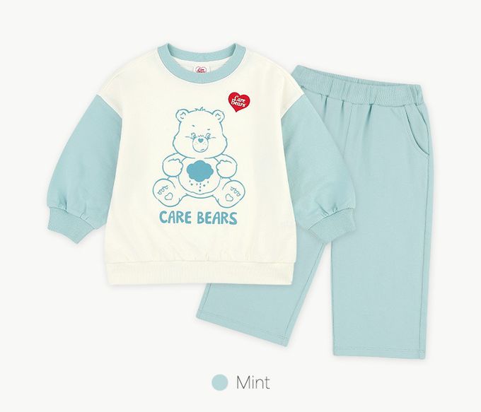 韓國 Care Bears - 聯名款熊熊雲朵印花落肩長袖套裝-薄荷藍
