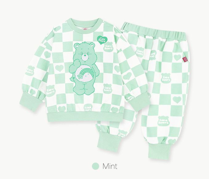 韓國 Care Bears - 聯名款熊熊流星印棋盤格紋長袖套裝-薄荷綠