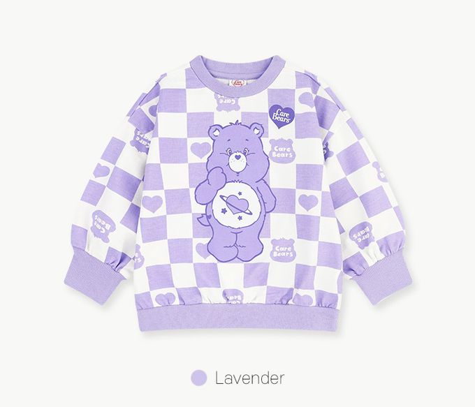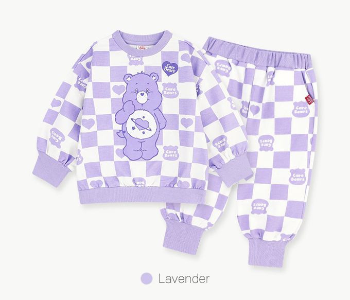 韓國 Care Bears - 聯名款熊熊心球印棋盤格紋長袖套裝-薰衣草紫